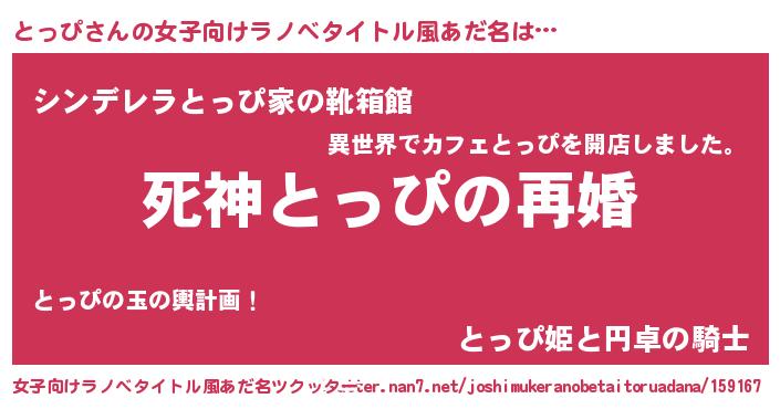 | 男性向けラノベタイトル風あだ名 | 『ノーゲーム・ノートッピ』 |