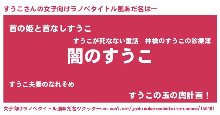 | 欧米人風あだ名 | 『ケンブリッジすうこ』『ダニエルすうこ』 |