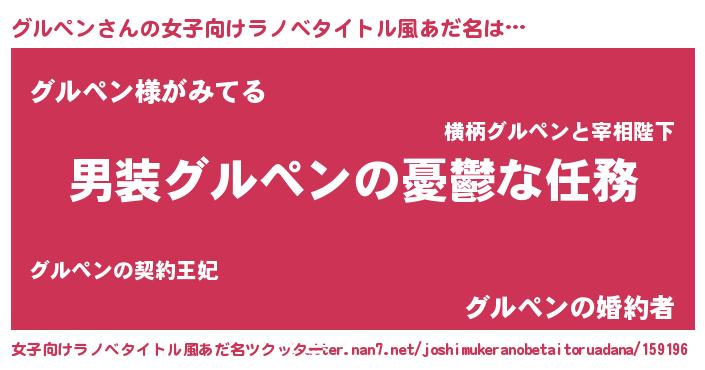 | 男性向けラノベタイトル風あだ名 | 『冴えないグルペンの育てかた』 |