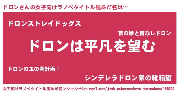 | 男性向けラノベタイトル風あだ名 | 『ダンジョンにドロンを求めるのは間違っているだろうか』 |