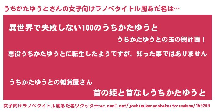 | 男性向けラノベタイトル風あだ名 | 『この素晴らしい世界にうちかたゆうとを!』 |