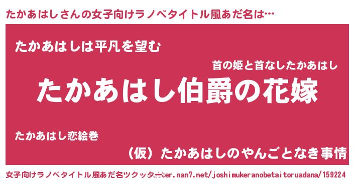 | 意味不明あだ名 | 『たかあはしフォーエバー』 |