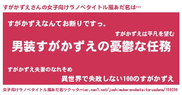 | 男性向けラノベタイトル風あだ名 | 『うちのすがかずえが世界を掌握している!』 |