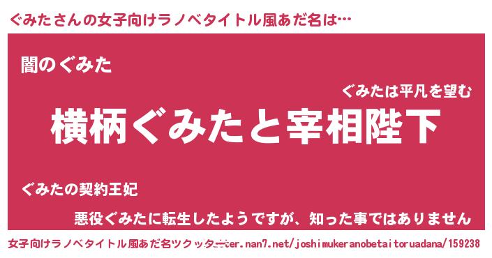 | 意味不明あだ名 | 『自称ぐみた』『住所不定無職ぐみた(4歳)』 |
