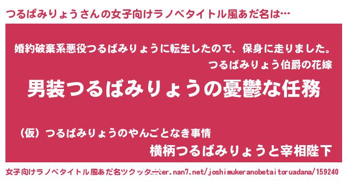 | 男性向けラノベタイトル風あだ名 | 『うちのつるばみりょうが世界を掌握している!』 |