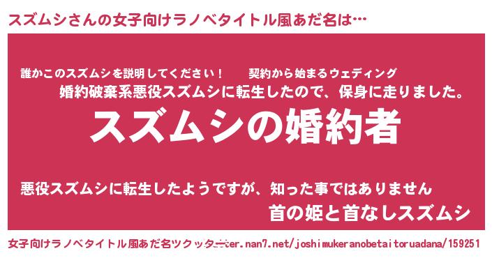 | 胡散臭い通販商品みたいなあだ名 | 『運命の人と巡り会える高級そうな絵画…その名も「スズムシ」』 |