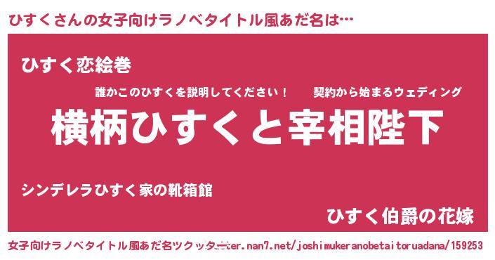 | 男性向けラノベタイトル風あだ名 | 『ひすくに滅ぼされるだけの簡単なお仕事です』 |
