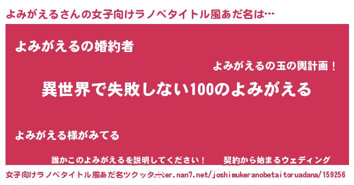 | 胡散臭い通販商品みたいなあだ名 | 『絶対に幸福をもたらす水素水…その名も「よみがえる」』 |