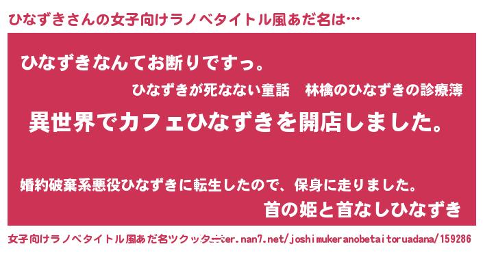 | 男性向けラノベタイトル風あだ名 | 『誰もが恐れるあのひなずきが、ぼくの専属メイドになるようです。』 |