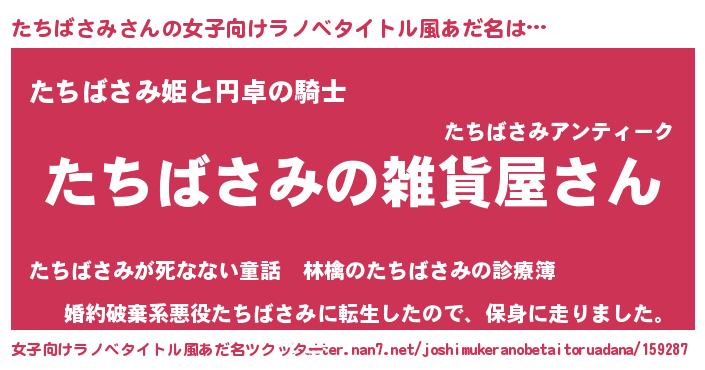 | 男性向けラノベタイトル風あだ名 | 『やはりたちばさみの青春ラブコメはまちがっている 』 |