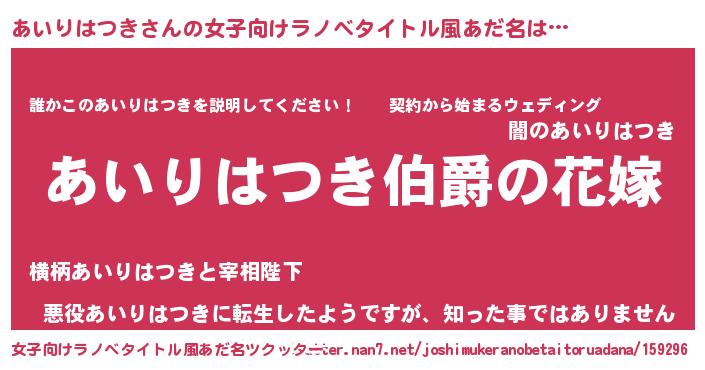 | 胡散臭い通販商品みたいなあだ名 | 『世界が平和になる高級そうな絵画…その名も「あいりはつき」』 |