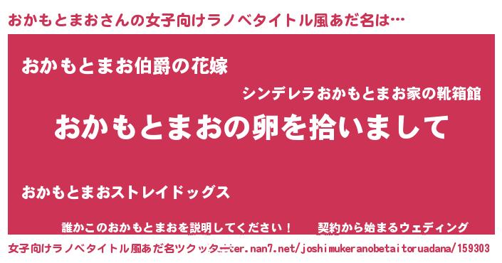 | 男性向けラノベタイトル風あだ名 | 『ダンジョンにおかもとまおを求めるのは間違っているだろうか』 |