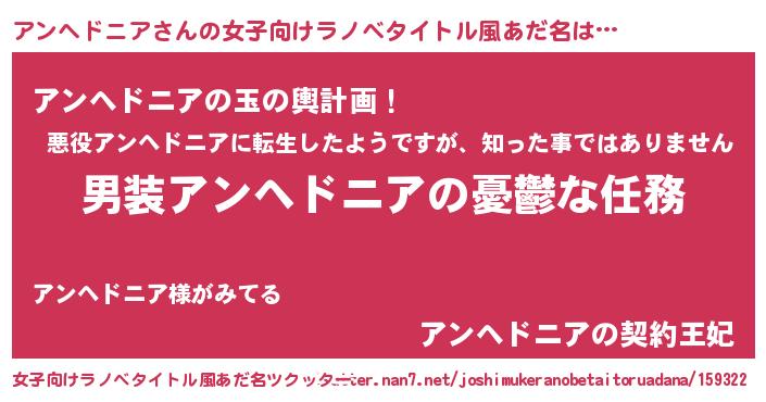 | 男性向けラノベタイトル風あだ名 | 『うちのアンヘドニアが世界を掌握している!』 |
