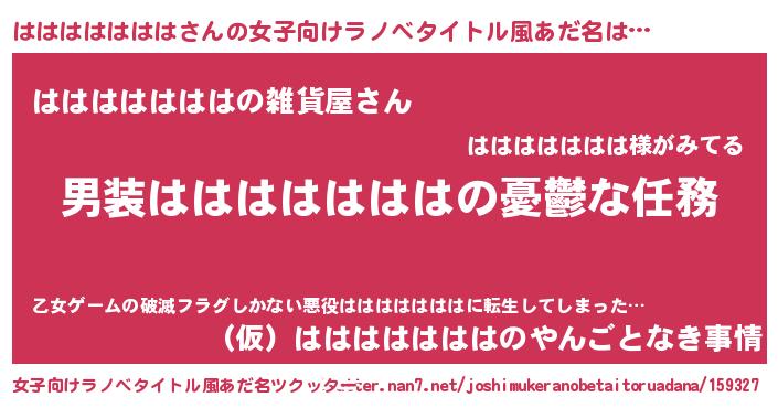 | 男性向けラノベタイトル風あだ名 | 『冴えないはははははははの育てかた』 |