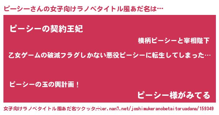 | ファンタジー風あだ名 | 『ヴァルピーーナ』『ピーディッシュ』 |