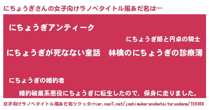 | 男性向けラノベタイトル風あだ名 | 『魔弾の王とにちょうぎ』 |