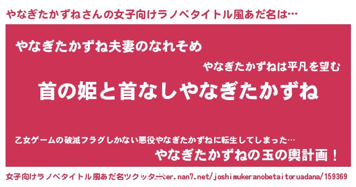 | 男性向けラノベタイトル風あだ名 | 『はたらくやなぎたかずねさま!』 |