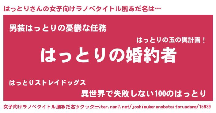 | 胡散臭い通販商品みたいなあだ名 | 『運命の人と巡り会える高級そうな皿…その名も「はっとり」』 |