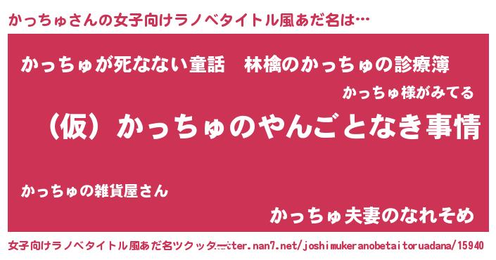 | 男性向けラノベタイトル風あだ名 | 『かっちゅの憂鬱』『魔弾の王とかっちゅ』 |