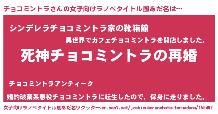 | 男性向けラノベタイトル風あだ名 | 『ノーゲーム・ノーチョコミントラ』 |