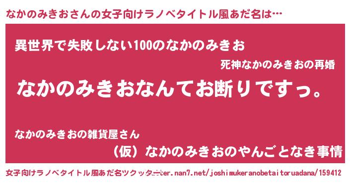 | 意味不明あだ名 | 『自称なかのみきお』 |