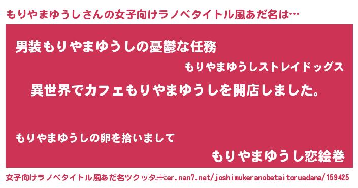 | 男性向けラノベタイトル風あだ名 | 『誰もが恐れるあのもりやまゆうしが、ぼくの専属メイドになるようです。』 |