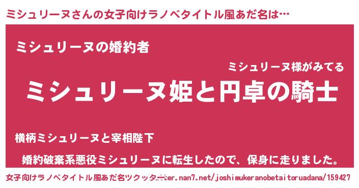 | 男性向けラノベタイトル風あだ名 | 『ミシュリーヌの憂鬱』 |
