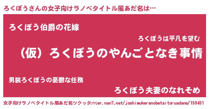 | 男性向けラノベタイトル風あだ名 | 『ろくぼうの憂鬱』 |