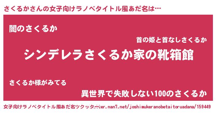 | 恥ずかしいあだ名 | 『サクルカデラックス』『さくちん』 |