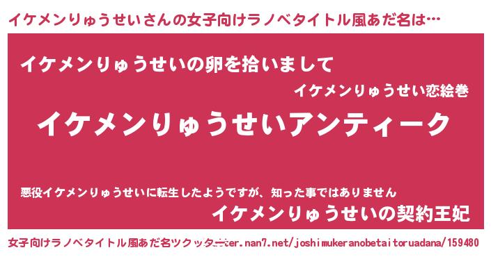 | 胡散臭い通販商品みたいなあだ名 | 『テレビで話題の高麗人参…その名も「イケメンりゅうせい」』 |