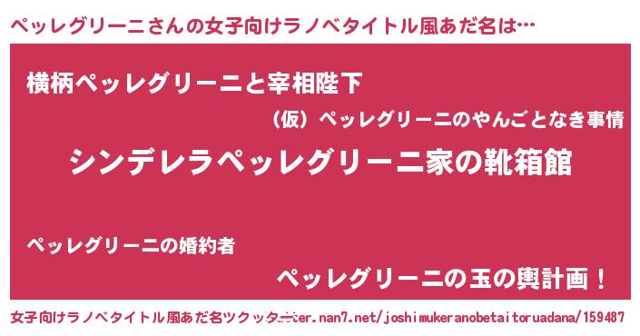 | 男性向けラノベタイトル風あだ名 | 『冴えないペッレグリーニの育てかた』 |