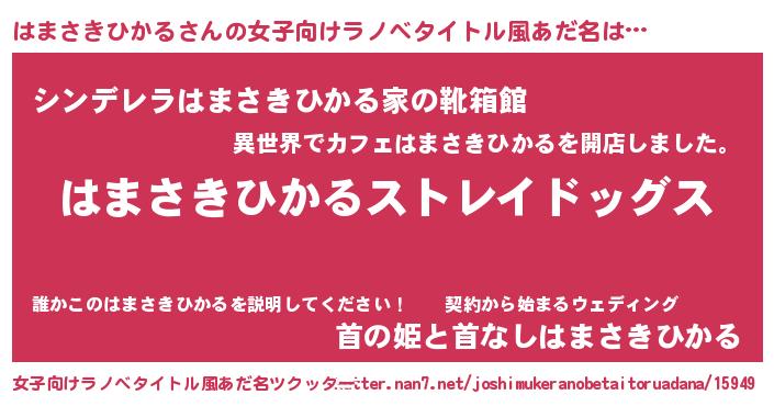 | 男性向けラノベタイトル風あだ名 | 『Re:はまさきひかるから始める異世界生活』 |