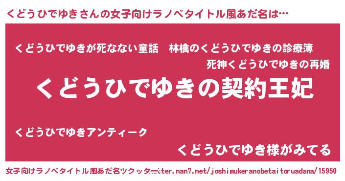 | 胡散臭い通販商品みたいなあだ名 | 『来世でも幸せになれる健康食品…その名も「くどうひでゆき」』 |