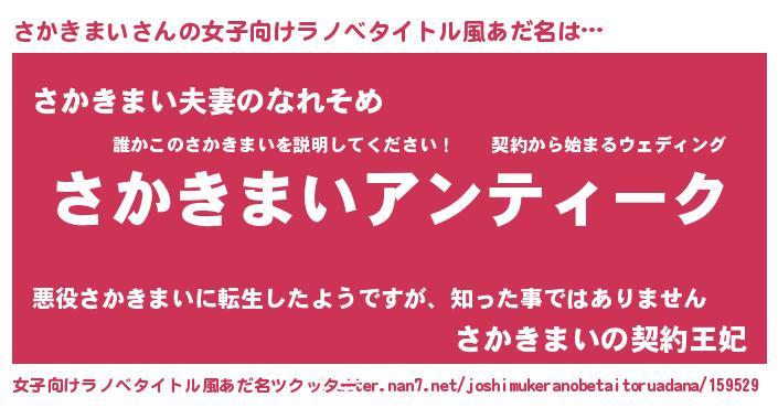 | 男性向けラノベタイトル風あだ名 | 『魔法科高校のさかきまい』 |