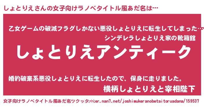 | 意味不明あだ名 | 『自称しょとりえ』『永久保存しょとりえ』 |