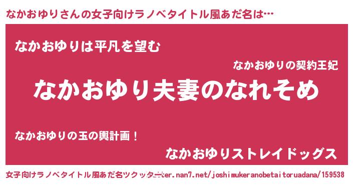 | 男性向けラノベタイトル風あだ名 | 『おまえをオタクにしてやるから、俺をなかおゆりにしてくれ! 』 |