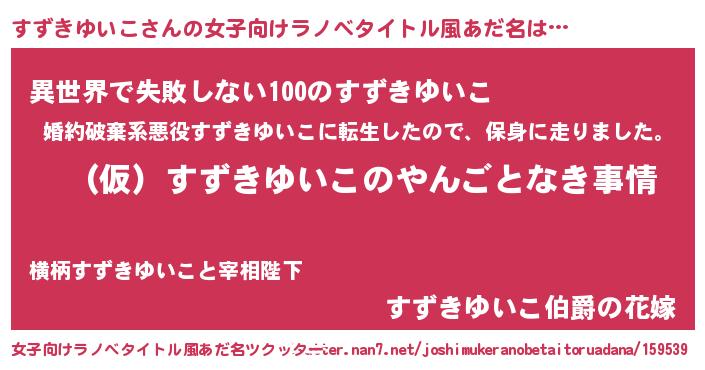 | 胡散臭い通販商品みたいなあだ名 | 『必ず成功するブレスレット…その名も「すずきゆいこ」』 |
