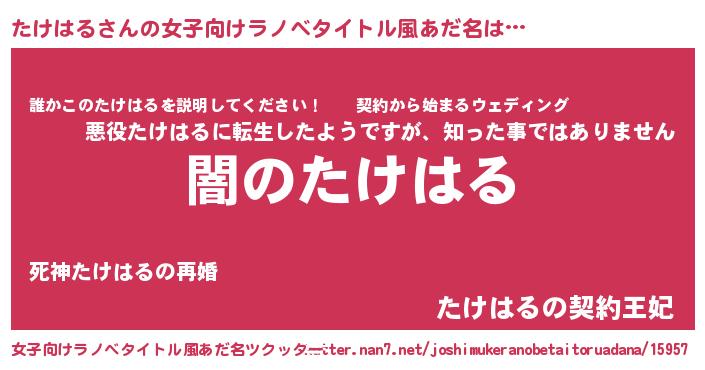| ヘコむあだ名 | 『たけにゅー』『たけはる(笑)』 |