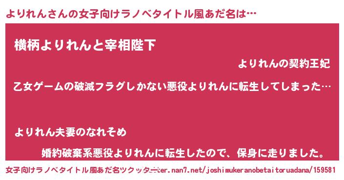 | ヘコむあだ名 | 『よりれん(小並感)』『よりっふぃ~』 |