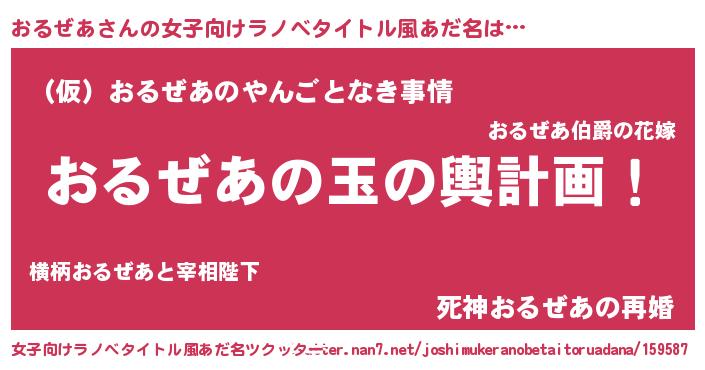| 肩書あだ名 | 『おるぜあ上級大将』『おるぜあ社長令嬢』 |