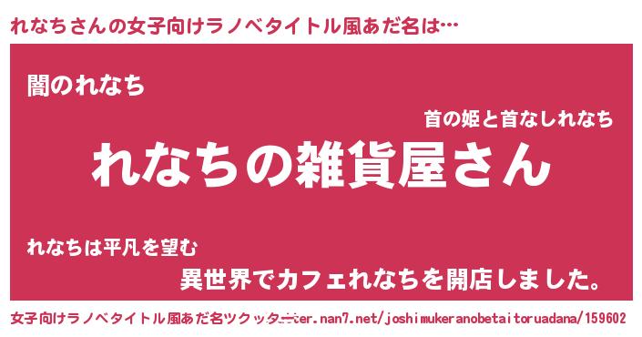 | 男性向けラノベタイトル風あだ名 | 『やはりれなちの青春ラブコメはまちがっている 』 |