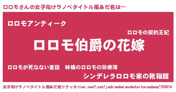| 欧米人風あだ名 | 『ロロモクリステル』『ダレノガレロロモ』 |