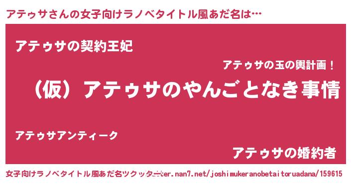 | 男性向けラノベタイトル風あだ名 | 『アテゥサの憂鬱』 |
