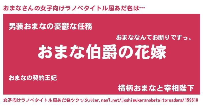 | 男性向けラノベタイトル風あだ名 | 『やはりおまなの青春ラブコメはまちがっている 』 |