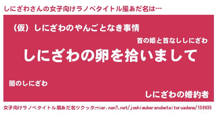 | 男性向けラノベタイトル風あだ名 | 『ダンジョンにしにざわを求めるのは間違っているだろうか』 |