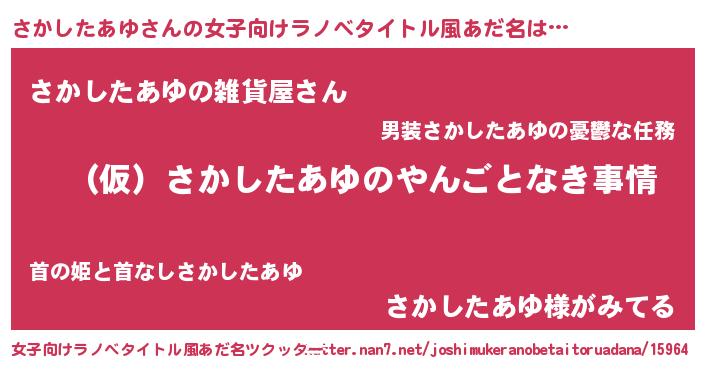 | 男性向けラノベタイトル風あだ名 | 『さかしたあゆの憂鬱』 |