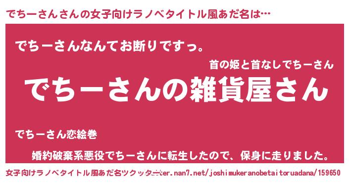 | 男性向けラノベタイトル風あだ名 | 『やはりでちーさんの青春ラブコメはまちがっている 』 |