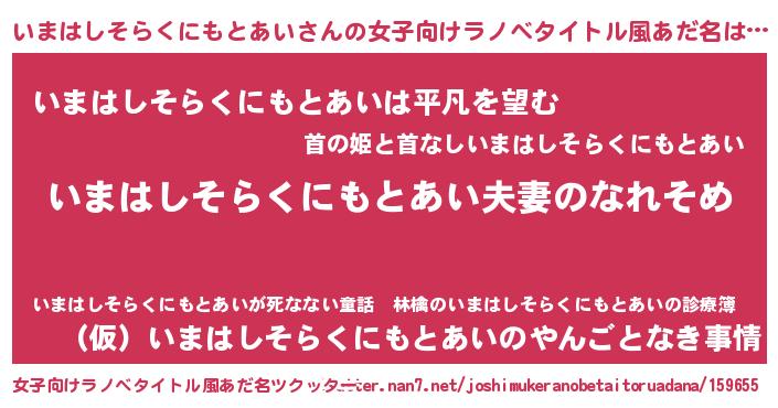 | 料理風あだ名 | 『いまはしそらくにもとあいのトマト煮』 |
