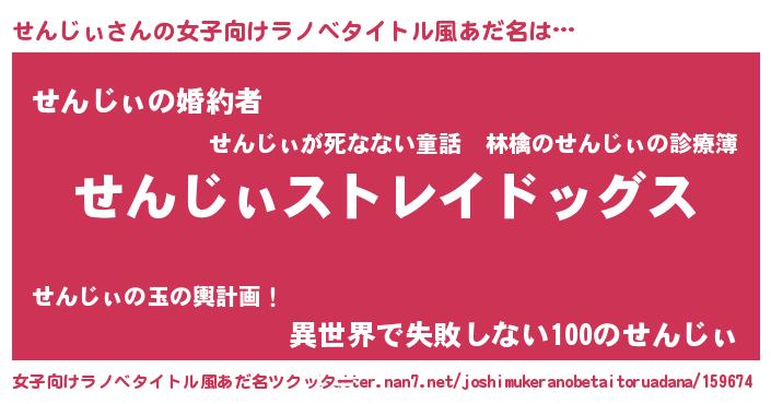 | 男性向けラノベタイトル風あだ名 | 『Re:せんじぃから始める異世界生活』 |