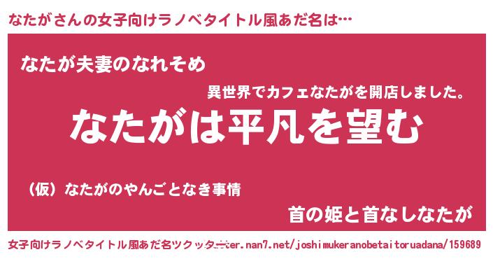 | 男性向けラノベタイトル風あだ名 | 『ダンジョンになたがを求めるのは間違っているだろうか』 |